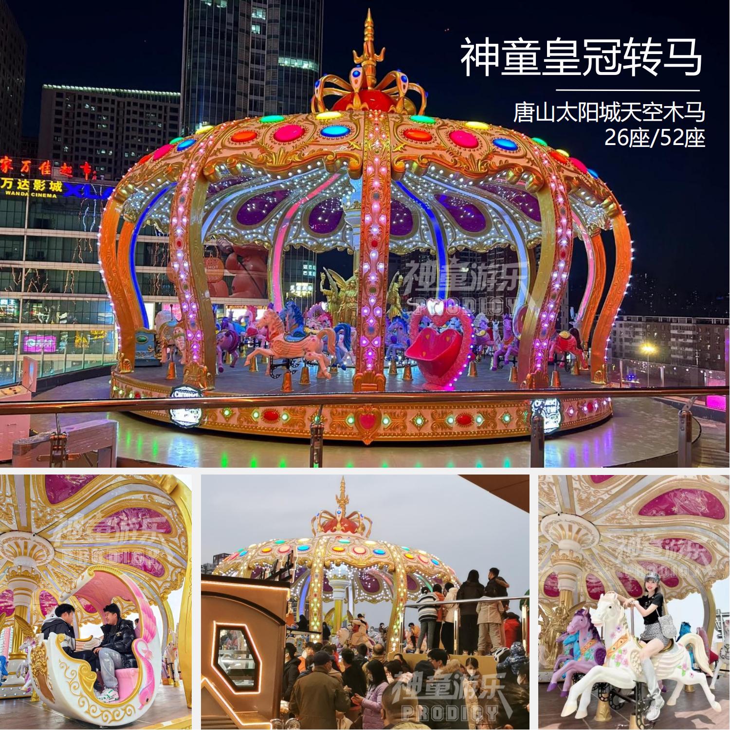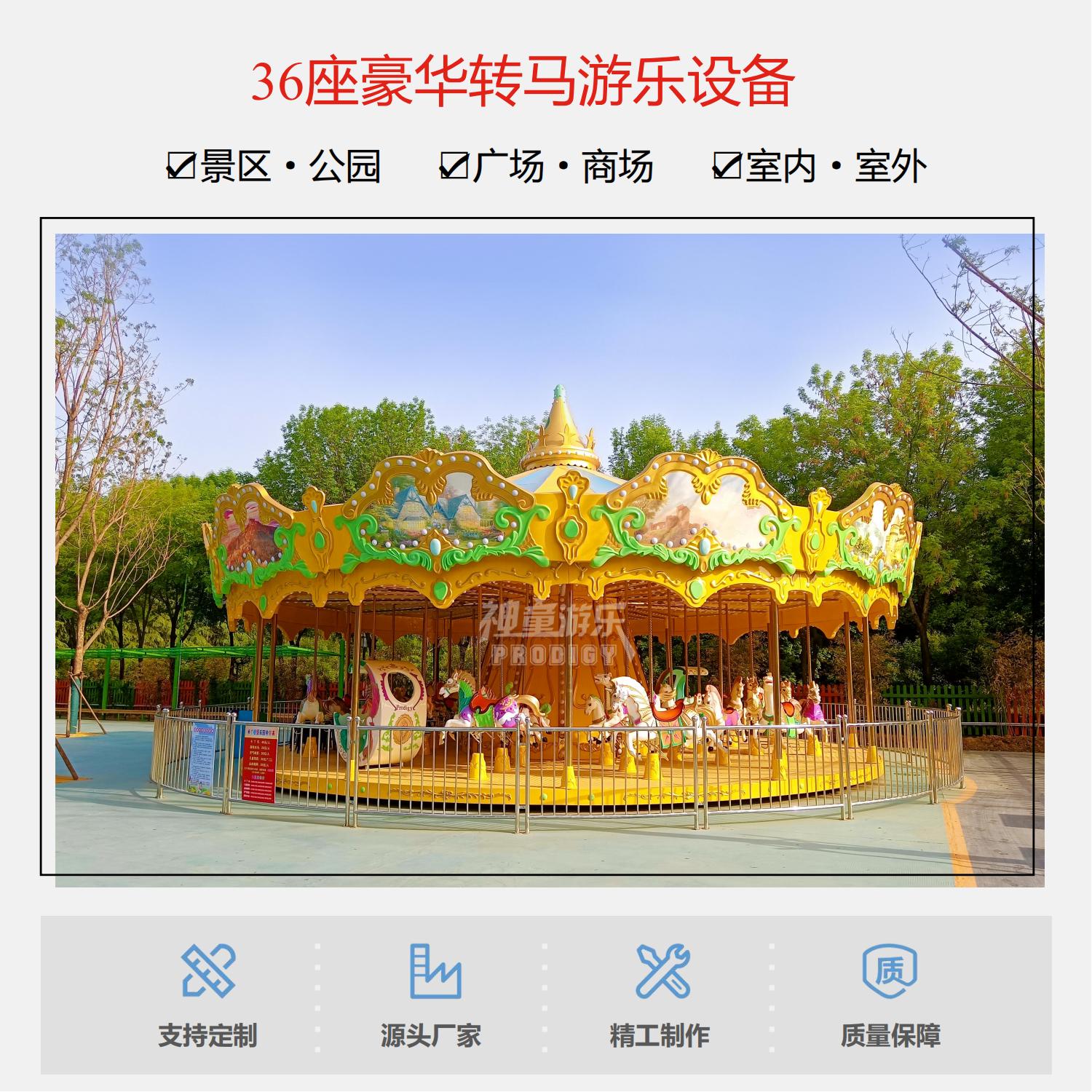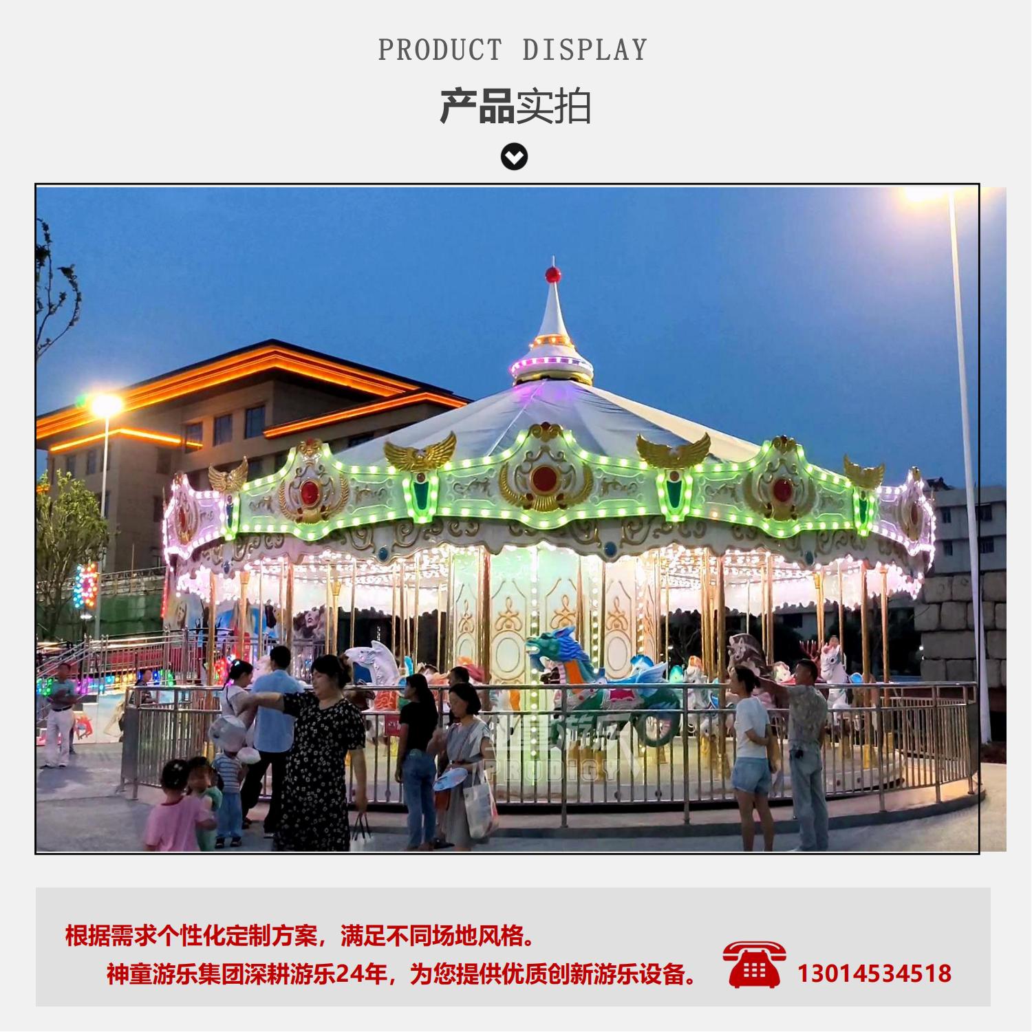 36座豪華轉(zhuǎn)馬采用夢幻飛檐、童話主題,適合公園、廣場嘉年華等主題。優(yōu)質(zhì)玻璃鋼材質(zhì),奢華外觀、華麗造型.做工精致. RGB裝飾燈,USB音樂設(shè)備 仿上驅(qū)動。 經(jīng)典的雙飛檐設(shè)計,嘉年華的動感呈現(xiàn),炫彩的燈光、華麗的造型,場地里最亮的星。