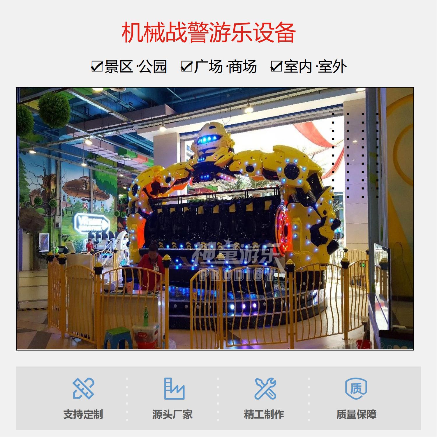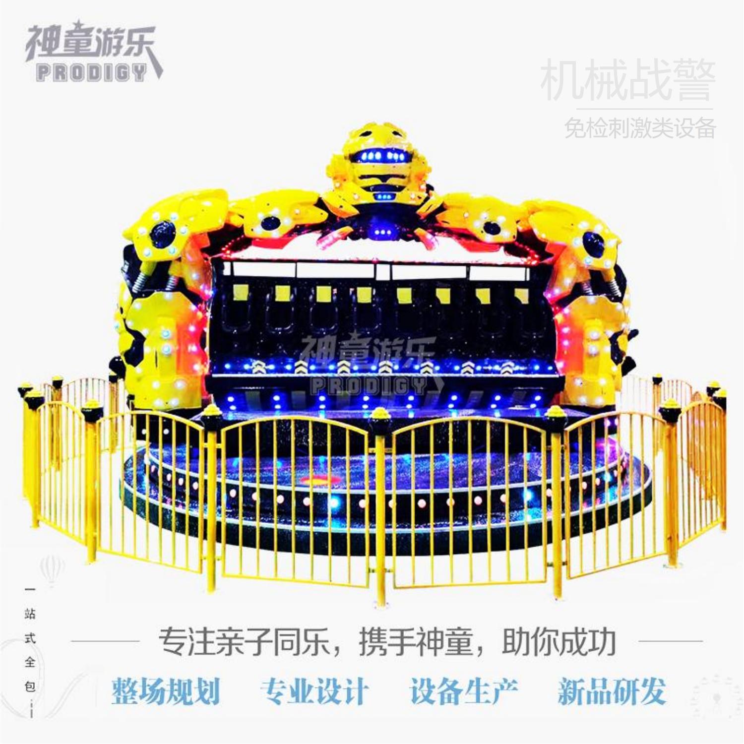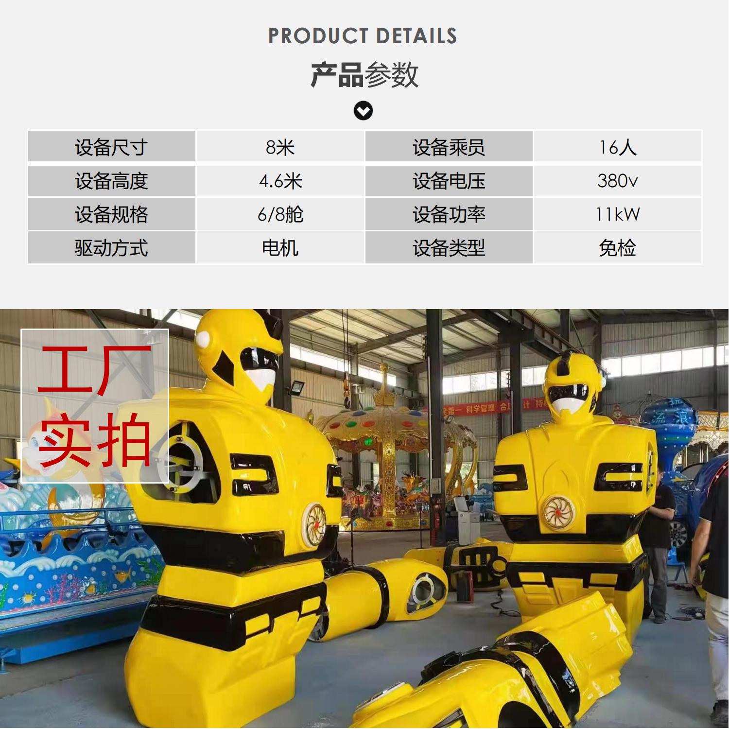 星際戰(zhàn)警是一款大型游樂(lè)場(chǎng)新款游樂(lè)設(shè)備項(xiàng)目,外觀雄偉壯觀,大氣十足,但是占地面積又不大,玩起來(lái)又非常的刺激,所以一經(jīng)上市就受到投資者的追捧,游客坐在變形金剛的懷抱中,在加上U型壓杠和三點(diǎn)式安全帶的雙重保護(hù)下,那玩起來(lái)嗨的不行了,星際戰(zhàn)警運(yùn)行平穩(wěn),噪音小,外觀設(shè)計(jì)巧妙,是一款非常刺激好玩的新款游樂(lè)設(shè)施項(xiàng)目。
