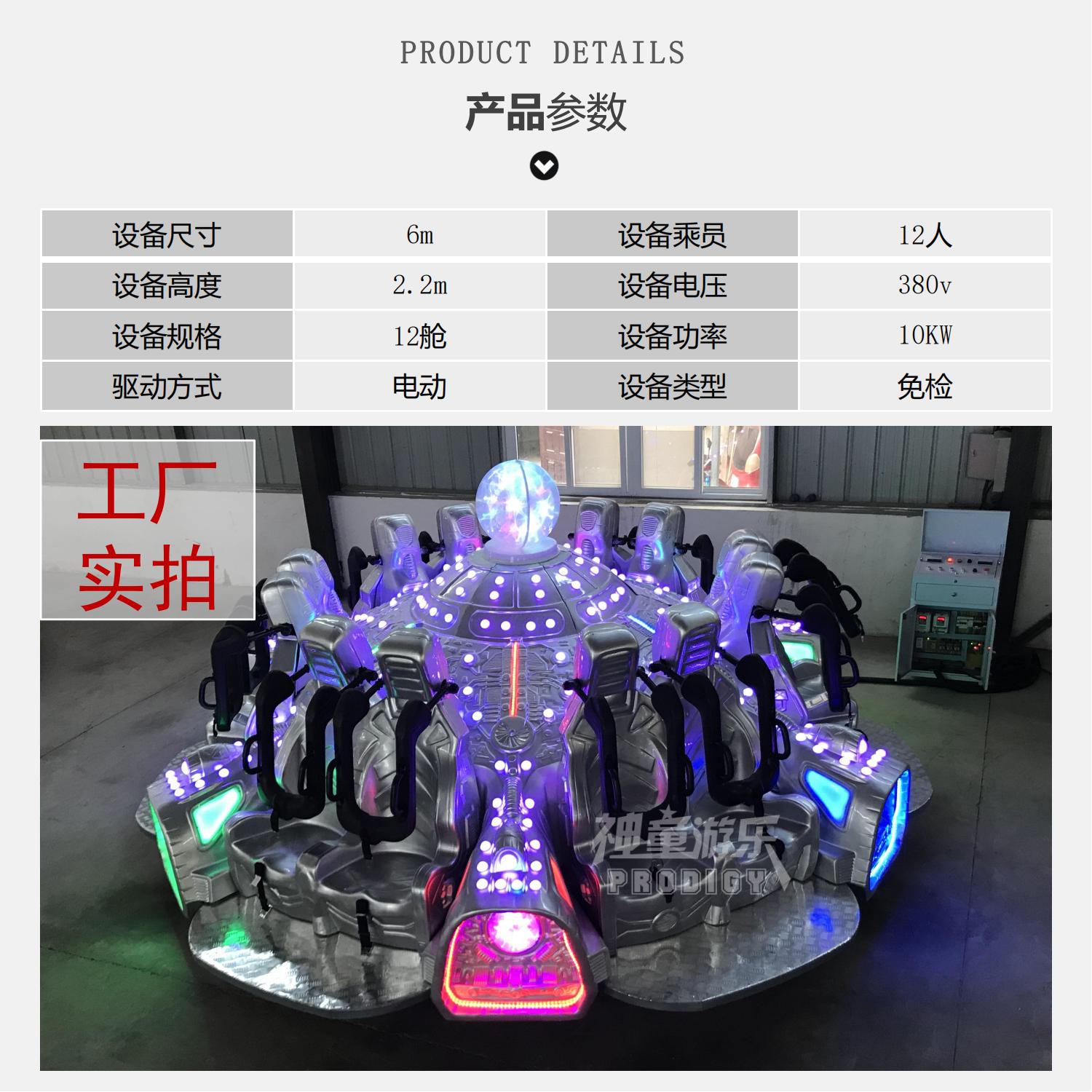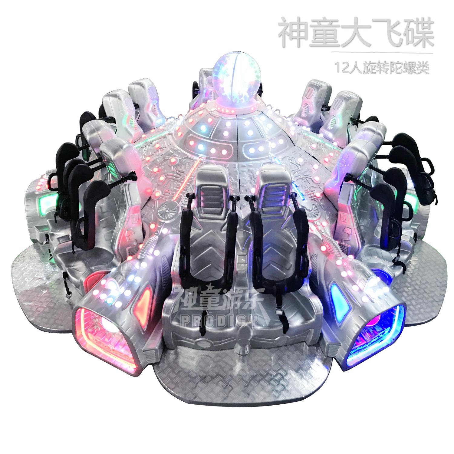 神童大飛碟是集圓周旋轉和沿軌道滑行運動于一體,并且外形美觀,色澤鮮艷,玻璃鋼模型逼真,適合放在公園商業(yè)街外廣場主題樂園景區(qū)農莊的適合室內室外的主題游樂設備。因為占地面積小,室內外均可擺放成為了投資者歡迎的產(chǎn)品,備受大人和兒童的歡迎,360°猶豫顏色鮮艷,造型吸引人,再配上動聽炫酷的音樂,把整個氣氛都渲染的淋漓盡致,從而吸引更多的游客,讓您的收入更可觀!